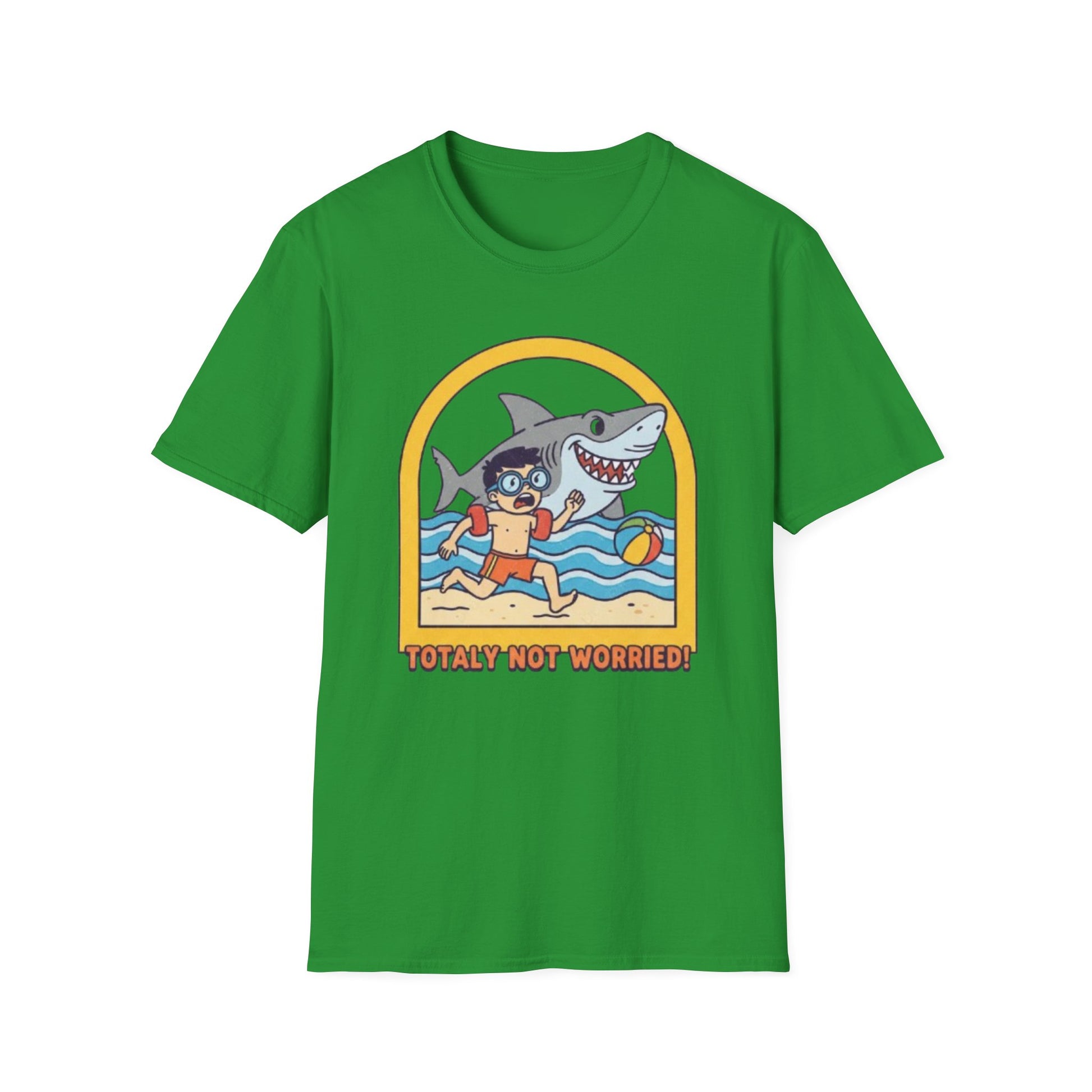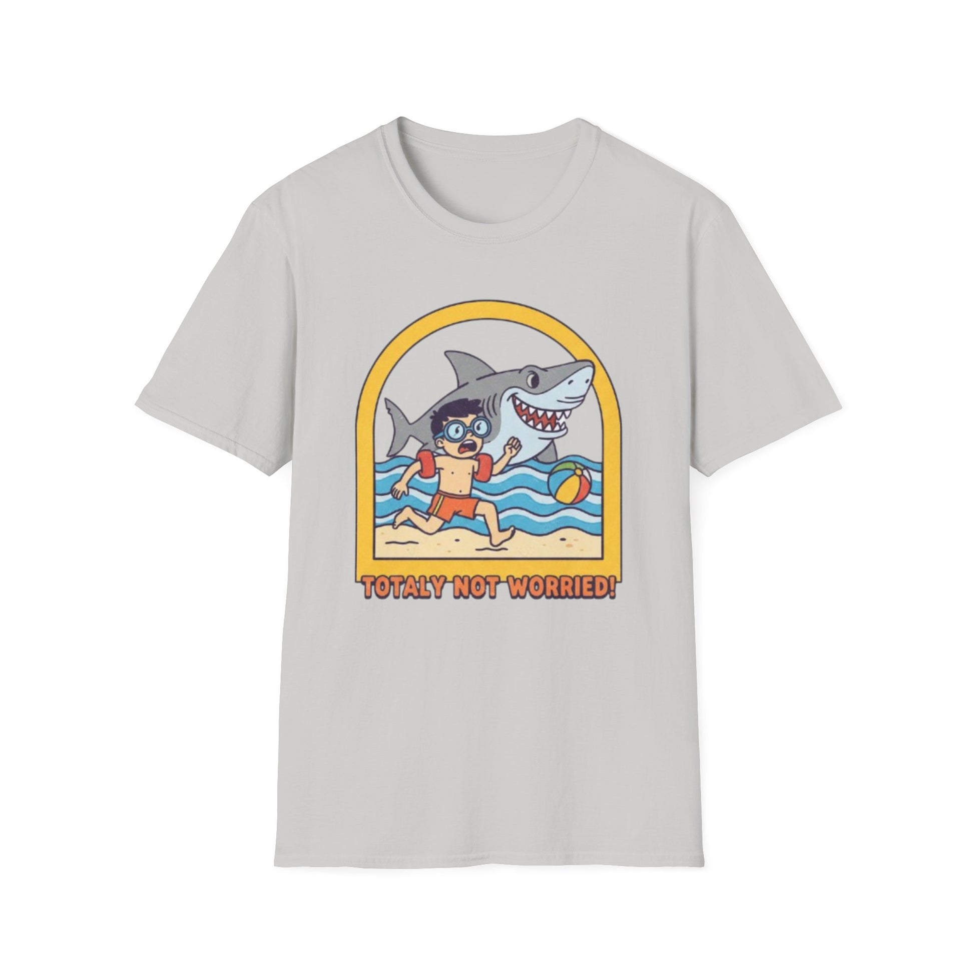 The internet’s most unhinged beach moment is now wearable. Picture this: a panicked swimmer sprinting down a beach while a grinning shark casually chases him with the caption **“Totally Not Worried”**. It’s the absurd, chaotic energy we all secretly live for – perfect for anyone whose sense of humor is armed and dangerous.