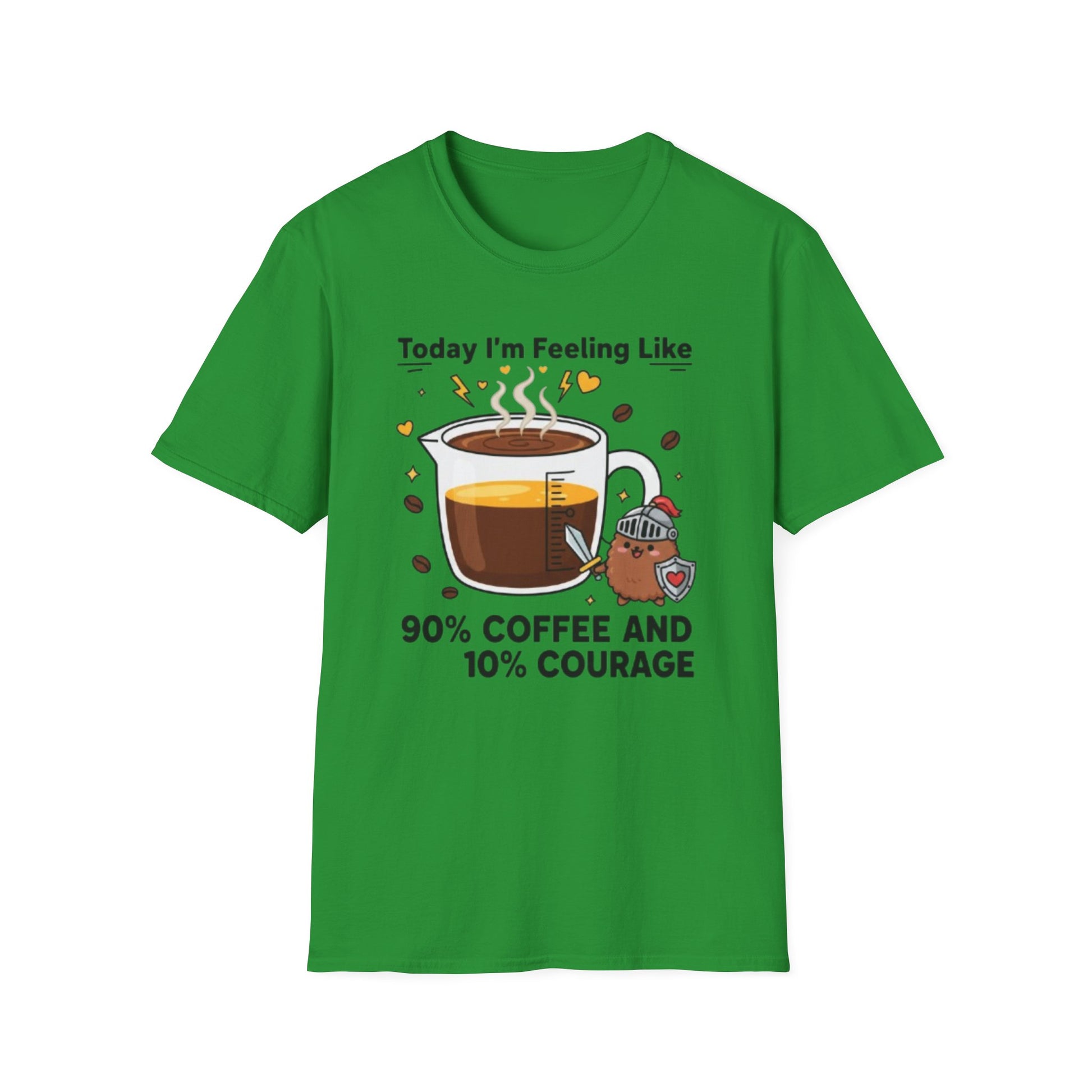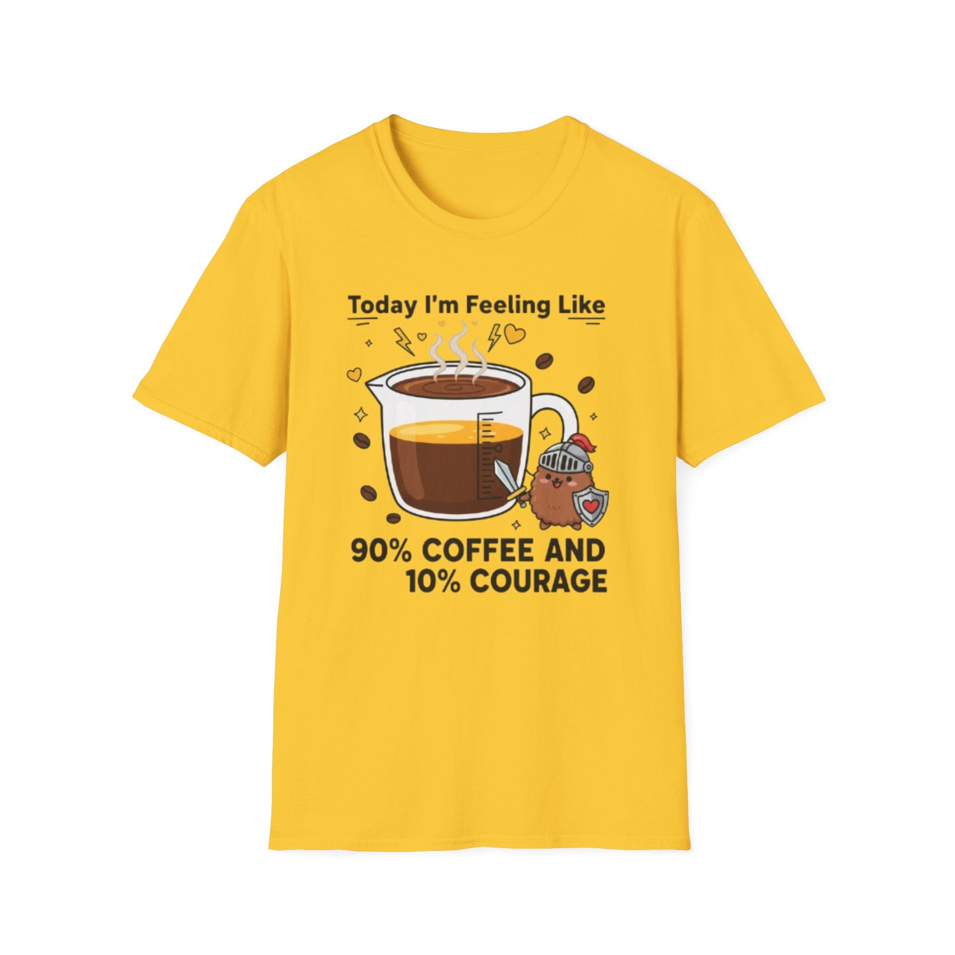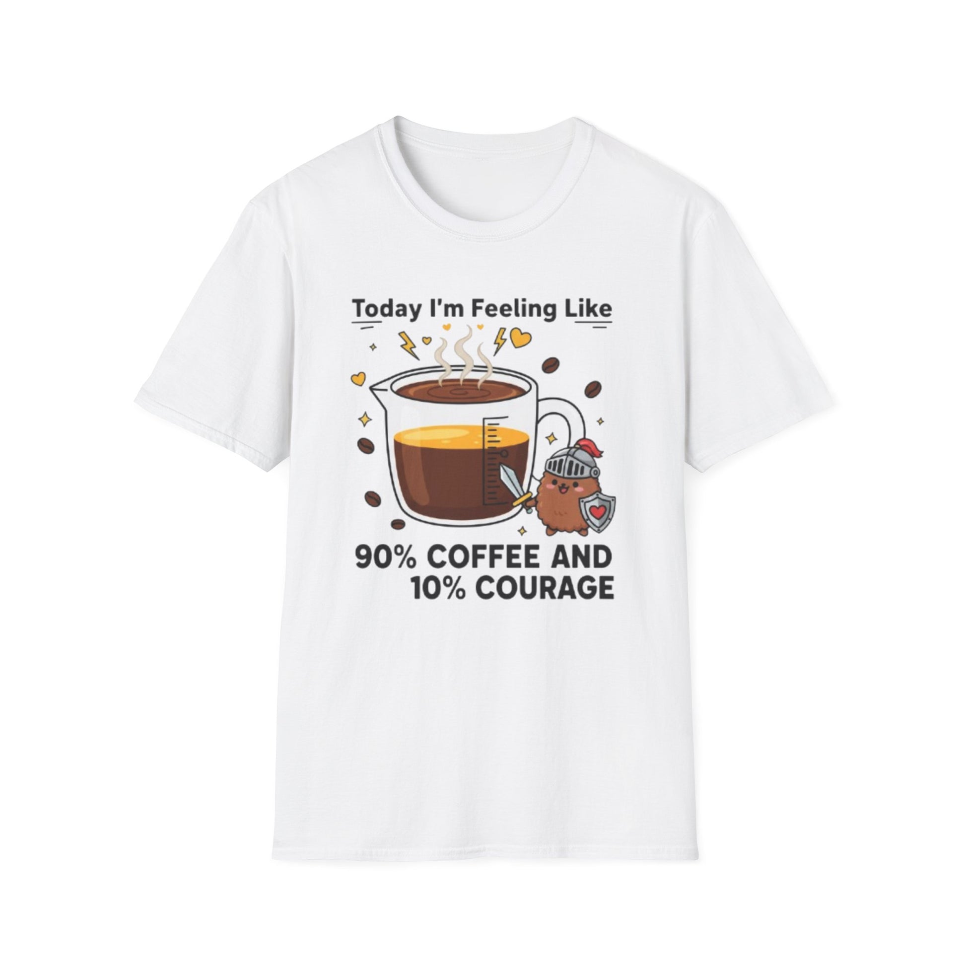 "Today I’m Feeling Like 90% Coffee and 10% Courage" Graphic Tee – The Perfect Shirt for Coffee Lovers & Morning Warriors
